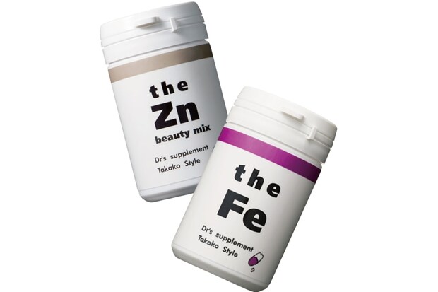 院長の貴子先生が手がける吸収率にこだわったサプリメント。鉄分や亜鉛などの不足しがちなミネラルを効率よく補給。左から:the Zn beauty mix 90錠 ¥6,480、the Fe 60カプセル ¥6,156(共にTAKAKOスタイル)