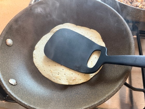 このレシピでは本来生地から作る工程がありますが、今回は市販のトルティーヤを使用しました。