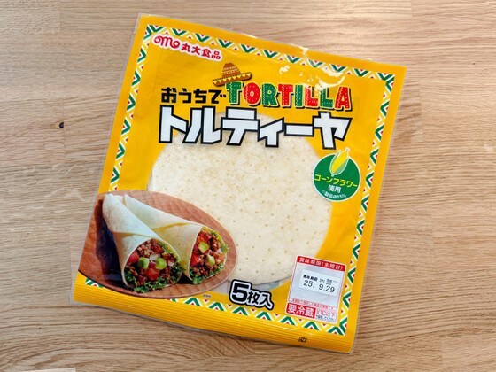 使ったのは、今年9月に新登場した丸大食品の「おうちでトルティーヤ」。市販品のトルティーヤでは珍しくコーンフラワーが使われていて、より本場に近い風味を楽しめます。