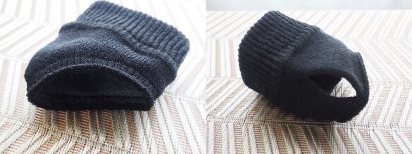 伸縮性はあるけれど、生地そのものがしっかりしている印象です。また、通常靴下の履き口は足首かその上下にくるのが一般的ですが、こちらはパーツソックスなので激短・足の甲でとまります。履く時は狭いほうの穴から親指を、広いほうの穴から人差し指、中指、薬指、小指を出します。