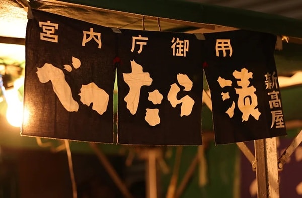 浅漬け大根のべったら漬がよく売れたことから「べったら市」と呼ばれ、若者が「べったりつくぞぉ~、べったりつくぞぉ~」と叫びながら縄に縛った大根を振り回して、参詣客の着物の袖につけてからかったのだそう。べったら漬はアメと麹で大根を漬け込んでいるため、衣服にべったりとついてしまうことから、べったら漬という名になったと言われている。