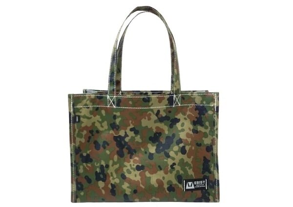 小サイズは、横30cm・高さ25cm・マチ13cmで、160g。カラーと税込価格は、迷彩が4,000円、白銀は3,500円、デニムが3,800円だ。