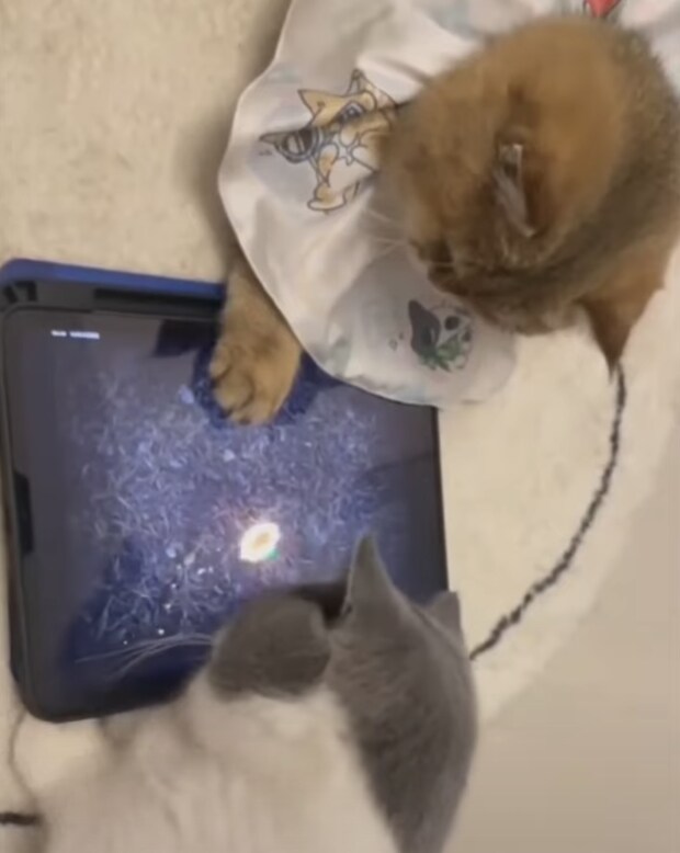 仲良く向かい合って遊んでいる二匹の猫さん。
