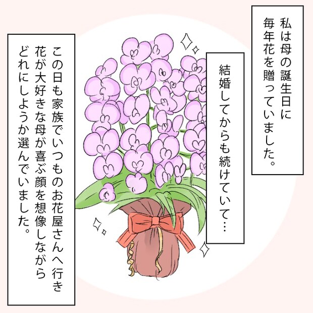 私は母の誕生日に毎年花を贈っていました。それは結婚してからもずっと・・。