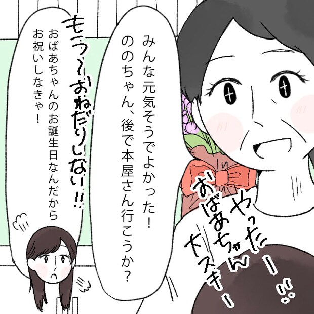 「もう~おねだりしない!!おばあちゃんのお誕生日なんだからお祝いしなきゃ!」ののにもう一度そう言い聞かせました。