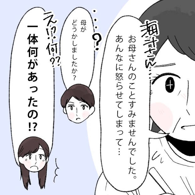 「海斗さん・・お母さんのことすみませんでした。あんなに怒らせてしまって・・」申し訳なさそうに謝るお母さんに、「・・?母がどうかしましたか?」海斗がそうたずねるのと同時に、「え!?何??一体何があったの!?」慌ててそう言いながら、