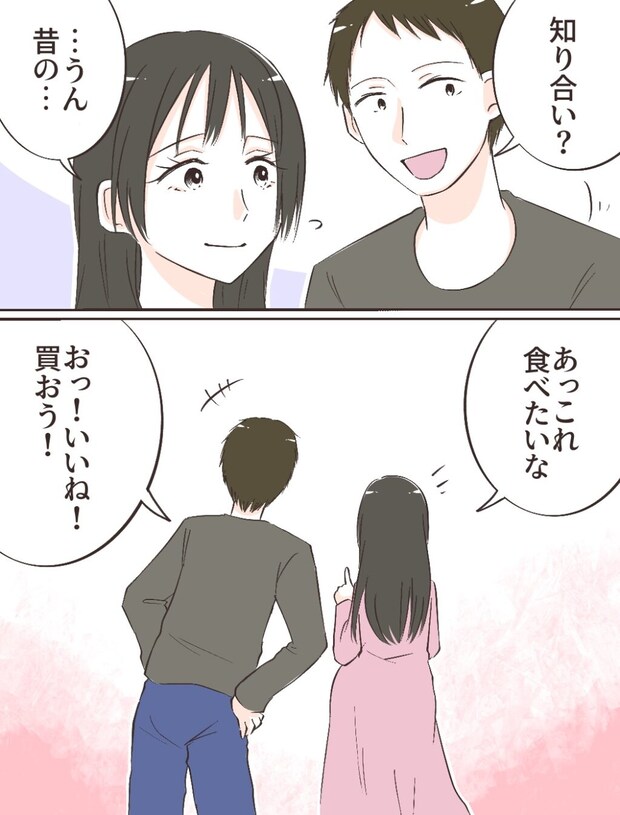 すると、「知り合い?」ヨウスケに聞かれ、「・・うん。昔の・・」と答えた後、「あっ、これ食べたいな」と言うと、「おっ!いいね!買おう!」ヨウスケも賛成してくれました。