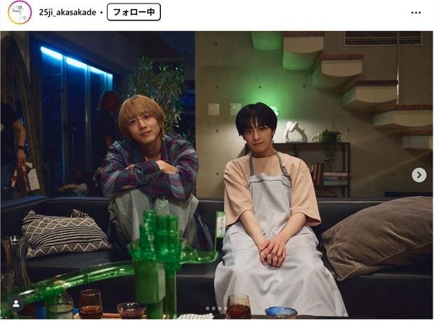 駒木根葵汰×新原泰佑がW主演を務めるドラマ「25時、赤坂で Season2」(毎週水曜深夜1:00-1:30ほか、テレ東系ほか/TVer・Leminoにて配信)が、10月12日に公式Instagramを更新。駒木根、新原のオフショットを公開した。