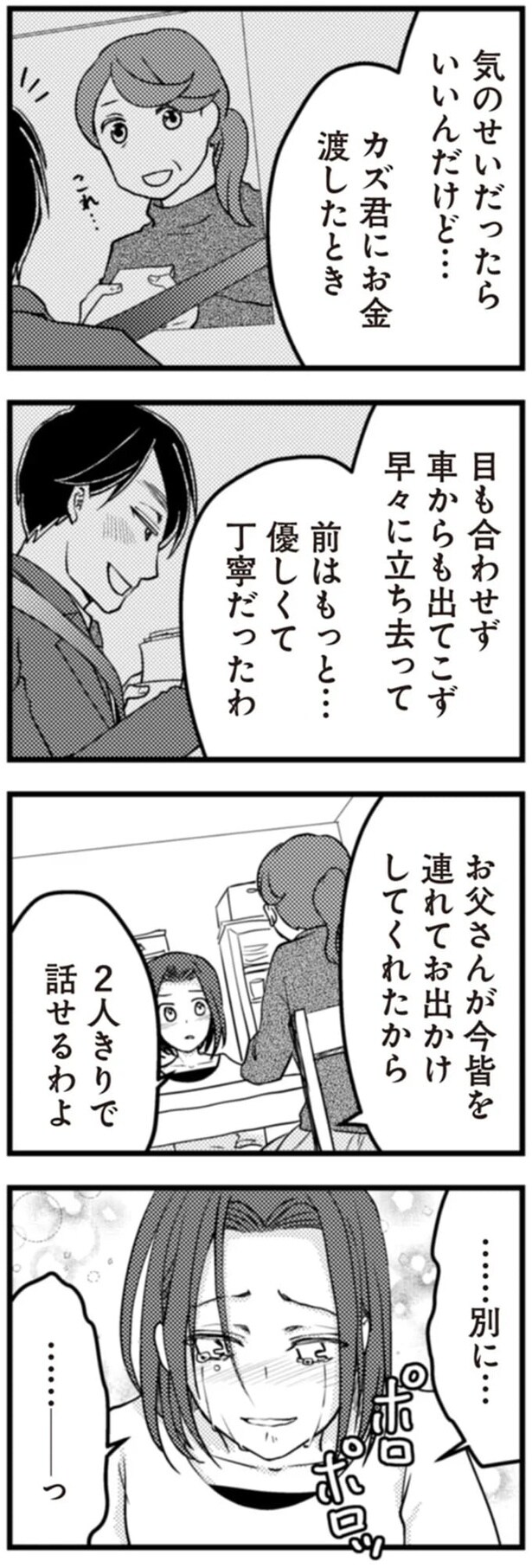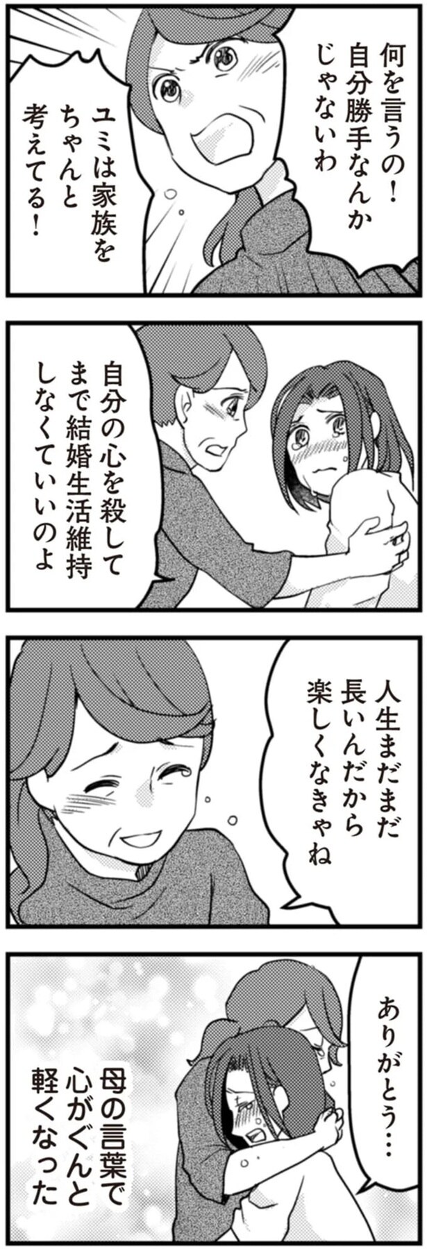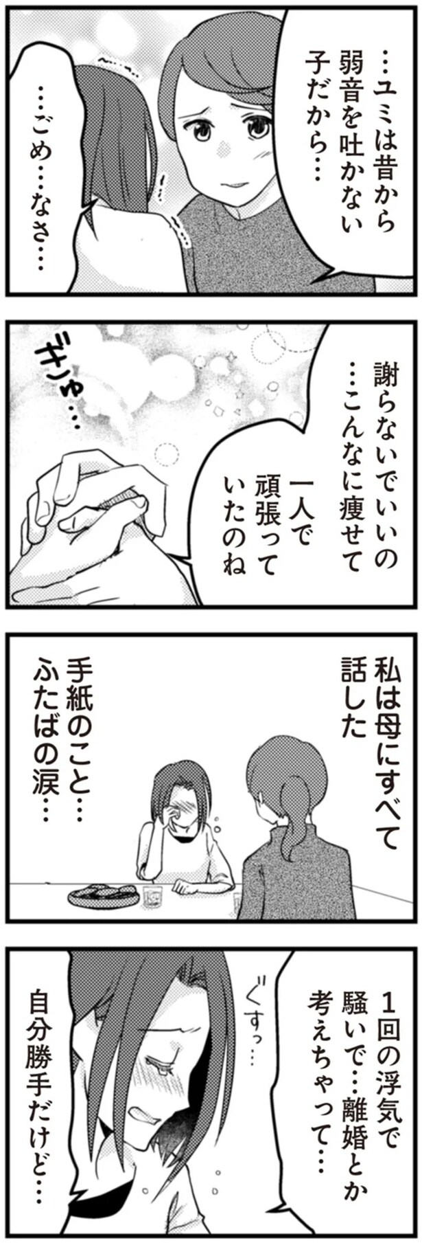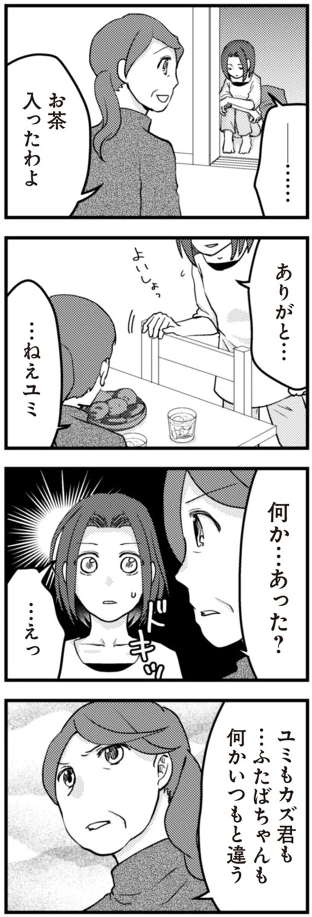 前回、コマに見張られているとも知らず、夫は不倫相手との旅行を楽しんでいた。一方で、コマからの中継連絡を聞き、精神的に参ってしまったユミ。そんなユミの異変に気付いたのは母親だった。ユミは母に今までのことを全て打ち明けることに…。