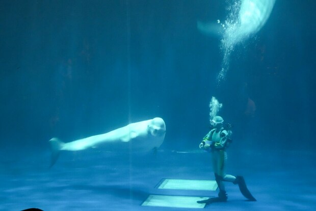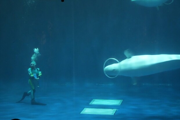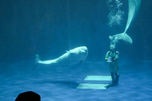 現在は赤ちゃんを含めて7頭のシロイルカが暮らしています。