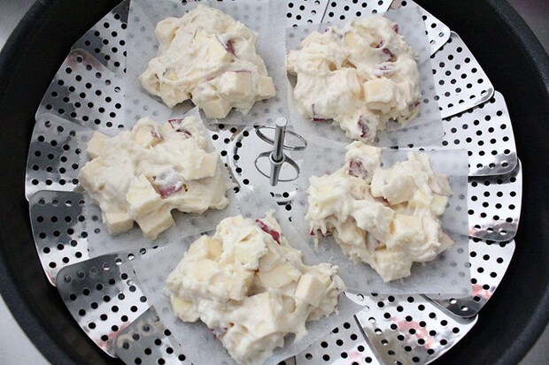4. 適当な大きさにカットしたクッキングシートの上に3を乗せ、蒸し器で30分ほど蒸せば完成!