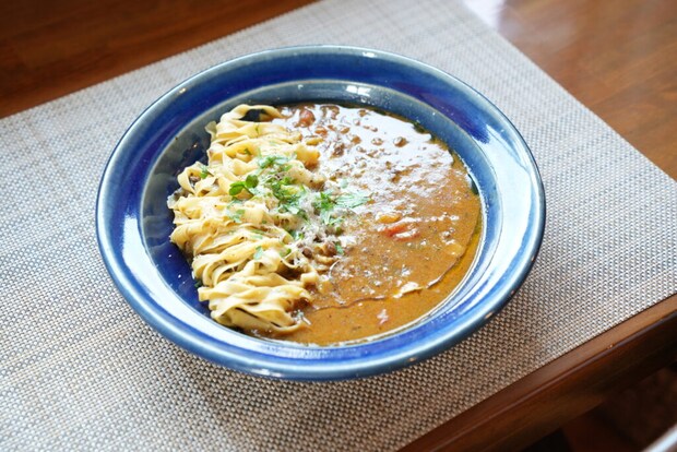 手づくりの平麺はもちもちで弾力があり、濃厚なボロネーゼソースがたっぷり絡んで最高の一皿。