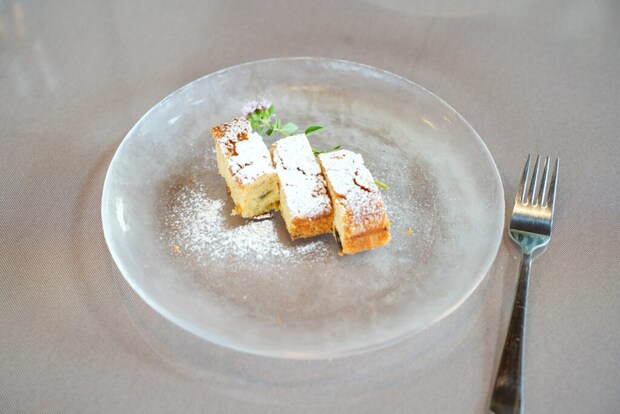 デザートは洋酒が香る大人な味わいのパウンドケーキ。優しい甘さに癒されました。