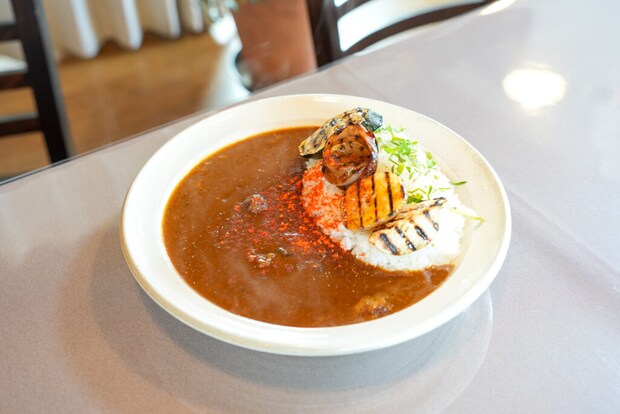 鹿すね肉のカレーと季節の野菜グリル(ケーキ付 1500円)