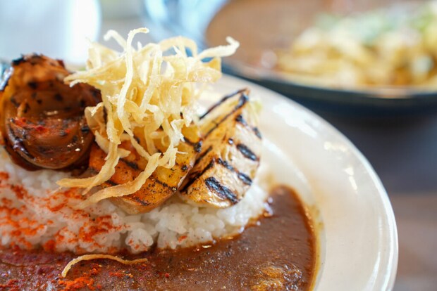 カレーはスパイシーで本格的な味わい。玉ねぎをじっくり炒めた甘み、鶏の出汁や赤ワインのコクも感じられ、深みのある味わいでした。