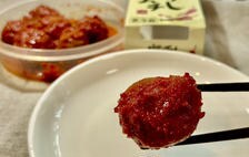南高梅のはちみつ梅干しを特製のキムチダレに漬け込んだ、新感覚の一品。