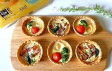 タルト生地とミックス粉がついているので、水か牛乳を入れてキッシュ液を作り、家にある具材をサッとタルト生地に入れて焼くだけ。