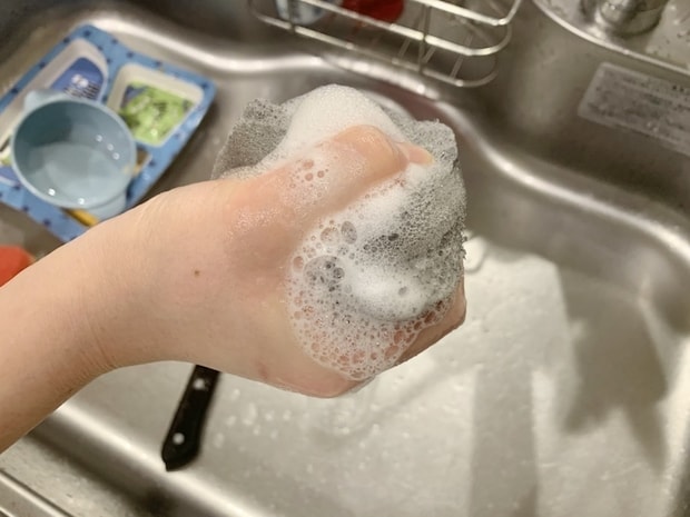 実際にスポンジの泡立ちは良く、少量の洗剤でもくしゅくしゅすれば多くの泡が出てきました。