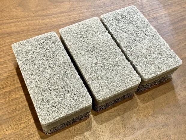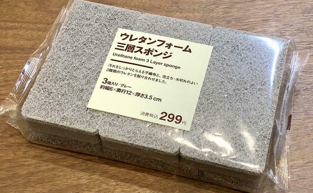こびりついた汚れを落とす下層のナイロン不織布、きめ細かな泡を作る中層の高密度ウレタン、水切れが良く清潔さを保ってくれる上層のウレタンの三層構造を採用。