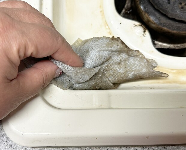 実際にガステーブルのしつこい油汚れに使ってみましたが、洗剤無しでも水で濡らすだけで汚れが落ちました!