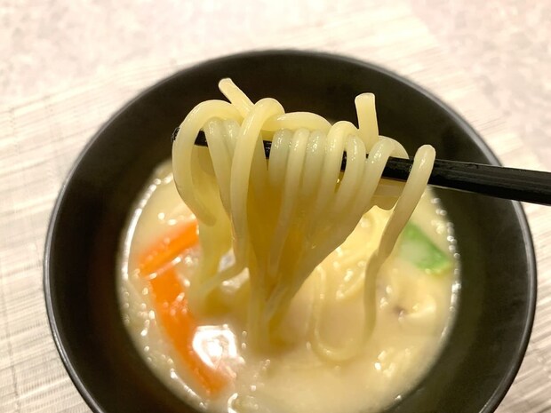 クセになるもちもち食感の麺にスープがからみ、あっという間に完食してしまう美味しさ。
