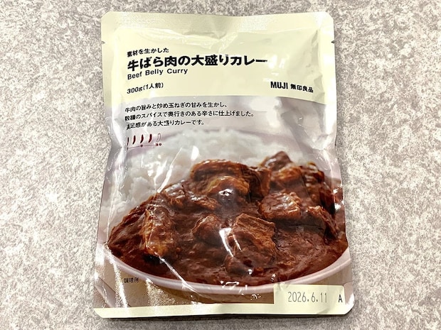 中には大きめの牛ばら肉がたっぷり入っています。無印良品の牛ばら肉はしっかりした歯ごたえがあり、噛むたびに牛肉の旨味が広がります。
