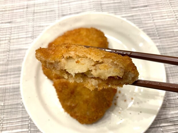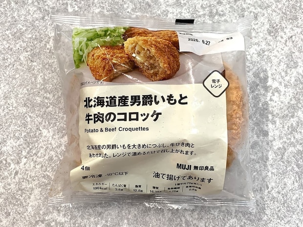 大きめに潰した北海道産男爵いもに、牛ひき肉を合わせた「北海道産男爵いもと牛肉のコロッケ」の冷凍が4個入っています。