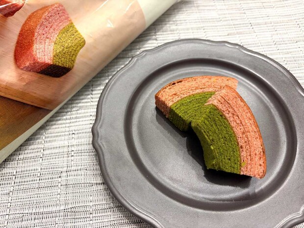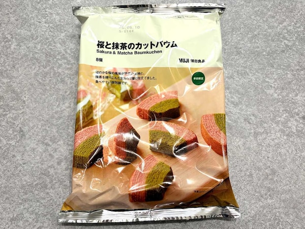 期間限定フレーバー「桜と抹茶のカットバウム」は、春を感じさせる2層のコントラストが美しい一品です。8個入り450円(税込)で、持ち運びに便利な個包装タイプなのが嬉しいポイント。