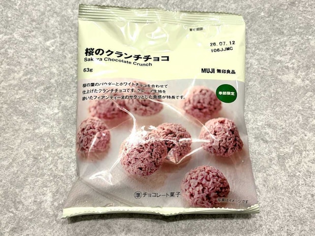 春の情景を思わせる淡いピンク色が目を引く「桜のクランチチョコ」(63g入・税込350円)は、ホワイトチョコの優しい甘さと桜の風味が絶妙にマッチした一品です。