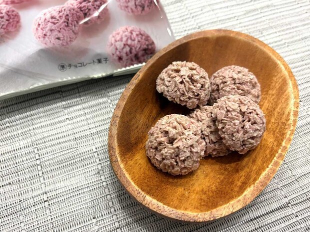 桜葉パウダーを練り込んだチョコは、口に入れると華やかな香りがふわっと広がり、サクサクとした軽快な食感を楽しめます。可愛らしいドーム型で一口サイズなうえ、手にチョコが付きにくいのも高ポイント。デスクワークの合間や、ちょっとした春のティータイムに彩りを添えてくれる、見た目も味も季節感たっぷりのスイーツです。
