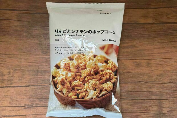 食感が異なる2種類のポップコーンを混ぜ合わせ、りんごの甘酸っぱい風味と、シナモンがほのかに香る、珍しい風味のポップコーンです。
