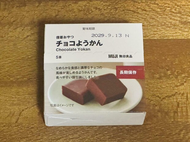 ひと口サイズのチョコ味のようかんが全部で5本入った一品。常温で長期保存が可能な災害時にも役立つおやつです。未開封の状態だと最長4年6か月、保存が可能です。