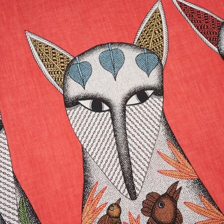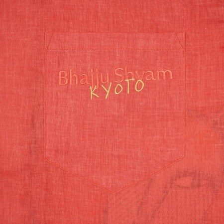 京友禅ブランド「Pagong」は、同展に合わせ、バッジュ・シャーム氏との特別コラボレーションアイテムを発表。「コットンアロハ <バッジュ・シャーム / 朱色>」26,400円(税込)をはじめとする限定モデルを販売している。