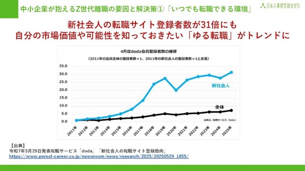 このような「売り手市場」を背景に、会社への帰属意識が薄れ、常に情報収集をしながら、辞めたくなったらすぐに転職する「ゆる転職」がトレンドになっています。この外部環境が、Z世代の早期離職を後押ししている一因です。
