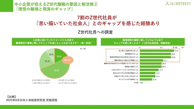 もうひとつの要因は、組織の内部環境です。同社が実施した調査では、Z世代の約7割が入社後に「思い描いていた職場とのギャップ」を感じたことがあると回答しています。