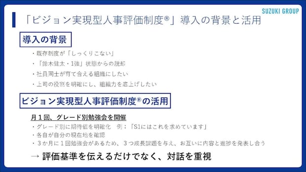 「以前はすべての評価を私が行っていたため、社員が社長に忖度する文化がありました。そこから脱却し、社員同士が育て合える組織にするため、上司の役割を明確にすることが必要でした」(鈴木氏)