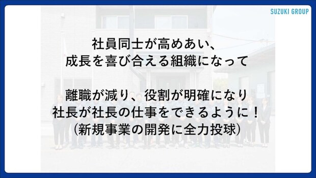 「役割が明確になったことで、私は新規事業の開発といった社長が本来やるべき仕事に全力投球できるようになりました。社員が作ってくれた時間で、5年後、10年後の会社の未来を創っていく。この好循環が生まれたことが最大の成果です」(鈴木氏)