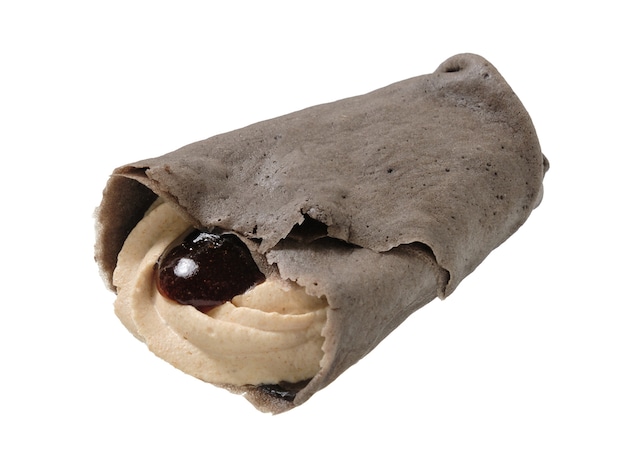 和風に仕上げたクレープです。もっちりとした食感のクレープでおもちや黒糖ソース、きなこクリームを巻きました。