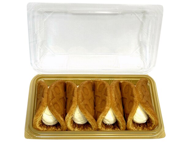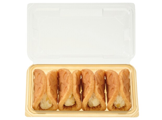 軽やかな口当たりのホイップカスタードクリームを、ふんわり口どけ良く焼き上げたワッフル生地で包んだ一品。シェアしても楽しみやすい一品です。