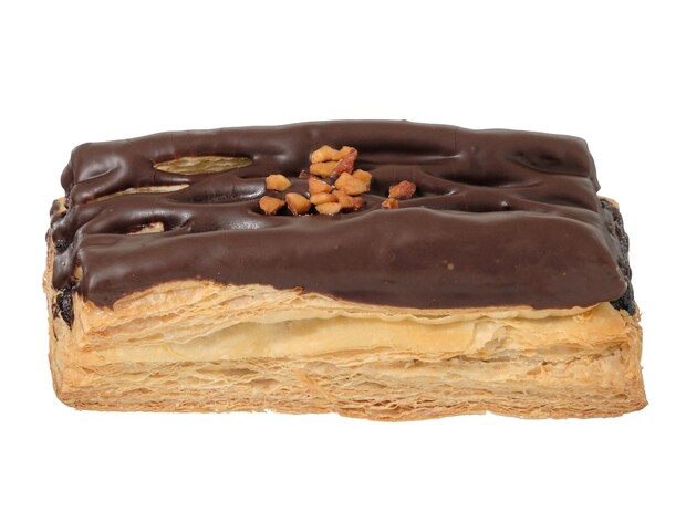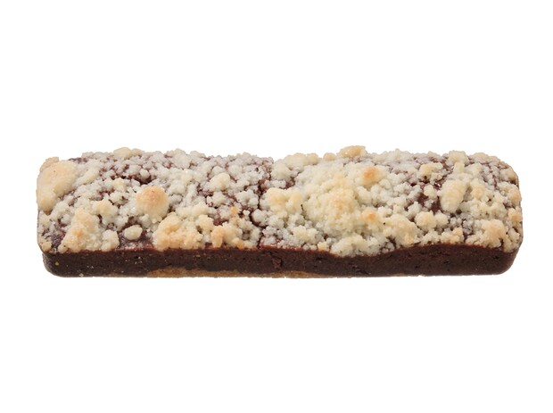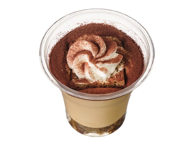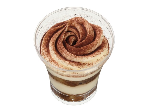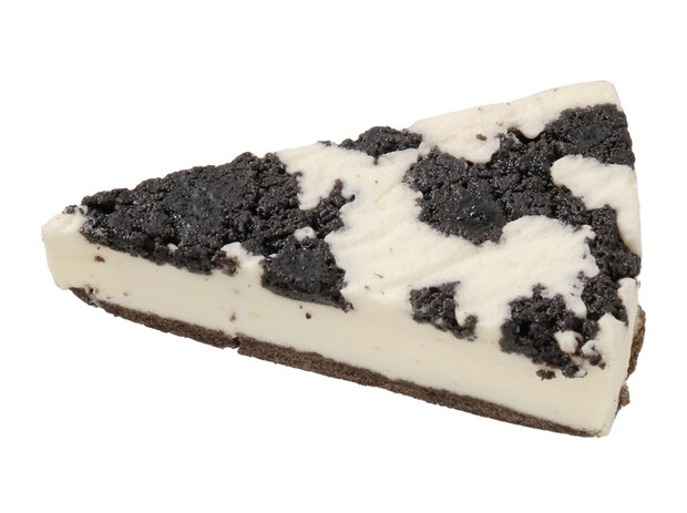 片手で楽しめるムースケーキ。ココアスポンジの上にバニラムースを重ねて作られています。食感のアクセントとして、サクッとした歯ごたえのココアクッキーがトッピングされているのが特徴です。