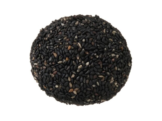 黒ごまあんをもっちもちの生地で包み、金ごまをまぶして焼き上げたシンプルな胡麻団子です。