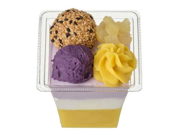 カップ形態でミルフィーユの味わいが楽しめるご褒美スイーツ。パイ生地とカスタードホイップを交互に重ねてミルフィーユのような層を表現しています。