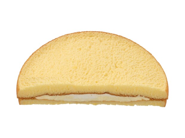 カスタードクリームと練乳を使用したホイップクリームを、ふんわりと焼き上げて半月型にカットしたシフォン生地でサンドした、食べ応えのあるシフォンケーキです。