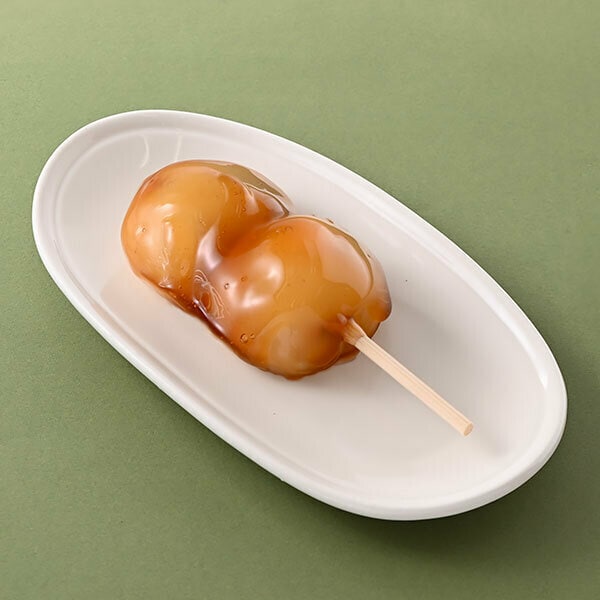 わらび粉を使用し、つるっともっちり食感に仕上げたこしあん入りのみたらし団子です。