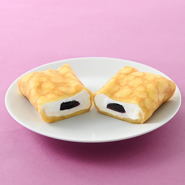 もちもちの生地で、ホイップとレアチーズムース、ブルーベリーソースを包みました。爽やかな味わいです。