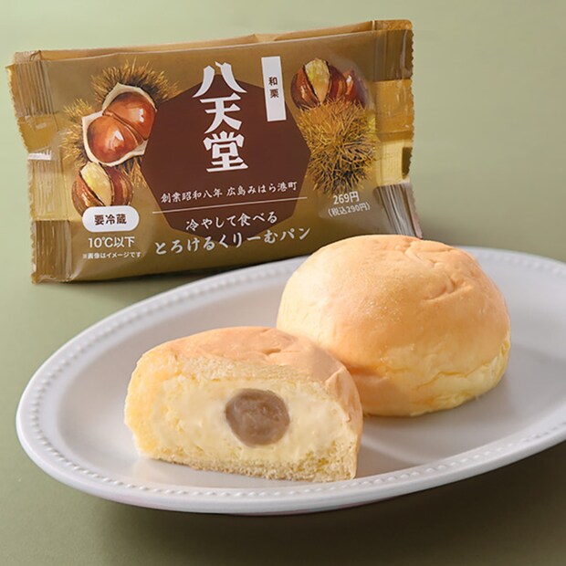 茨城県産の和栗ペーストと、豊かな風味のマロンクリーム。この二つを中に詰めたのが、八天堂の「とろけるくりーむパン」です。冷やして食べることで、その美味しさが一層引き立ちます。※ファミリーマート限定