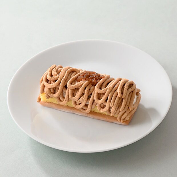 タルトとスポンジの上に、マロンソース、ホイップクリーム、マロンクリームを絞り、さらにマロンダイスをトッピングすることで、手軽に楽しめるスティック状のモンブランに仕上げた一品。