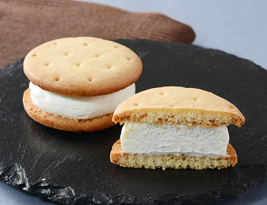 口の中でほどけるような新食感を楽しめるビスケットでたっぷりのクリームを挟んだビスケットサンドです。