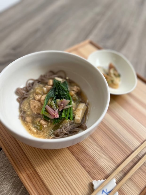 クリスマスですが、メニューは通常モード(笑)。ランチタイムに提供した「親子丼風あんかけ蕎麦」はお料理上手のスタッフ真理子のアイデア! とろみをつけたあんには卵と鶏肉をたっぷりと。信州の天然水で作られた美味しい【霧しな】のお蕎麦に熱々のあんをかけてできあがりです。寒い中、少しお待たせしてしまった時間帯もあったので、身体の芯から温まる美味しいお蕎麦をみんな喜んでくれました。クリスマスパーティの日は毎回大入りで、スタッフ陣はフル回転。スタッフ同士で声を掛け合いながら、休む間もなく働いてあっという間に完売となりました。