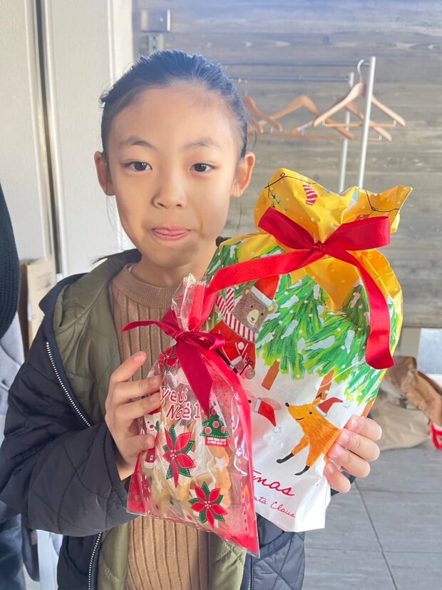 イロモノマーケットサンタからは、直筆メッセージ入りのお菓子セットとポーチを。みんな嬉しそうにお手紙を読んでいました。